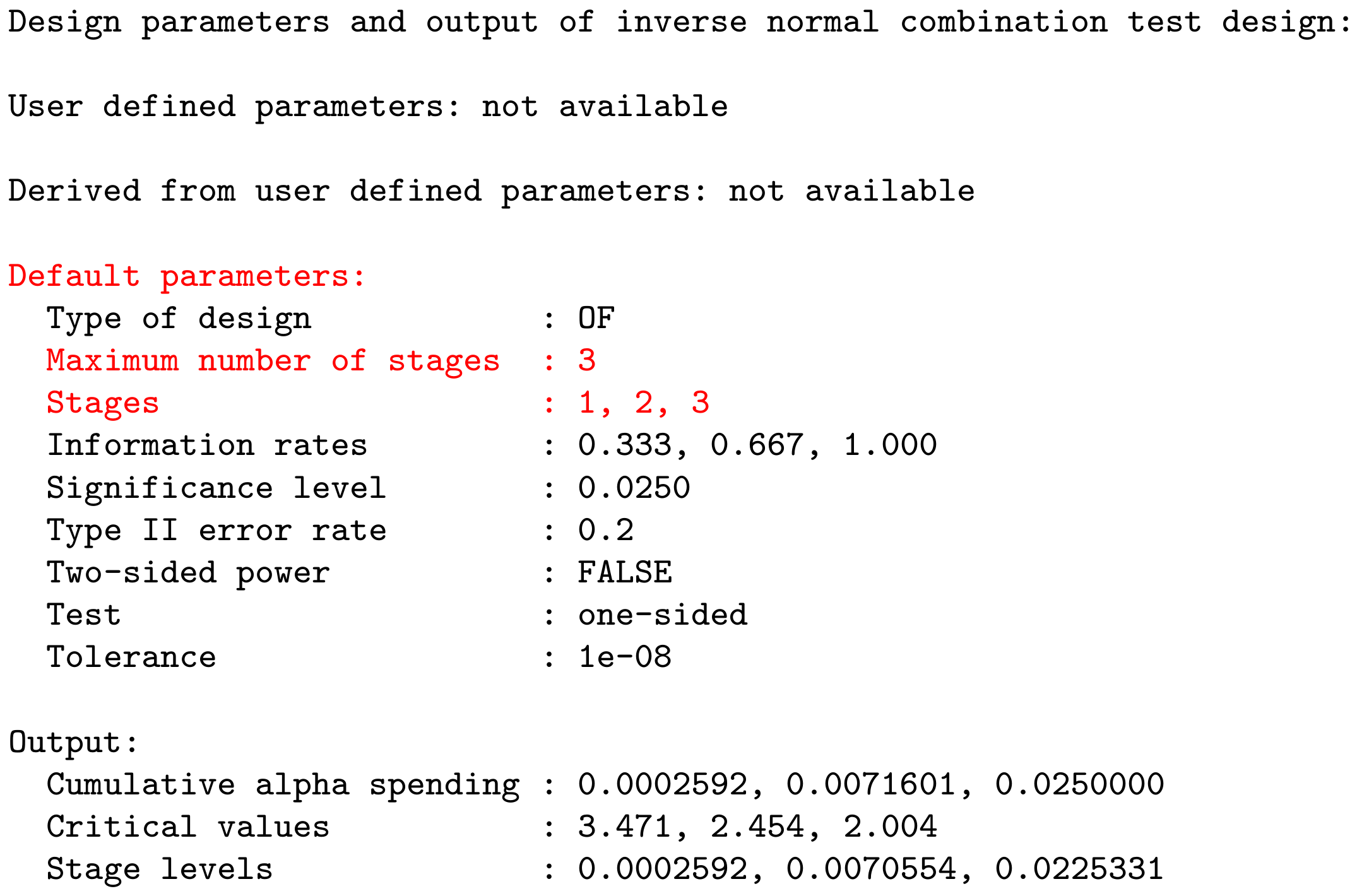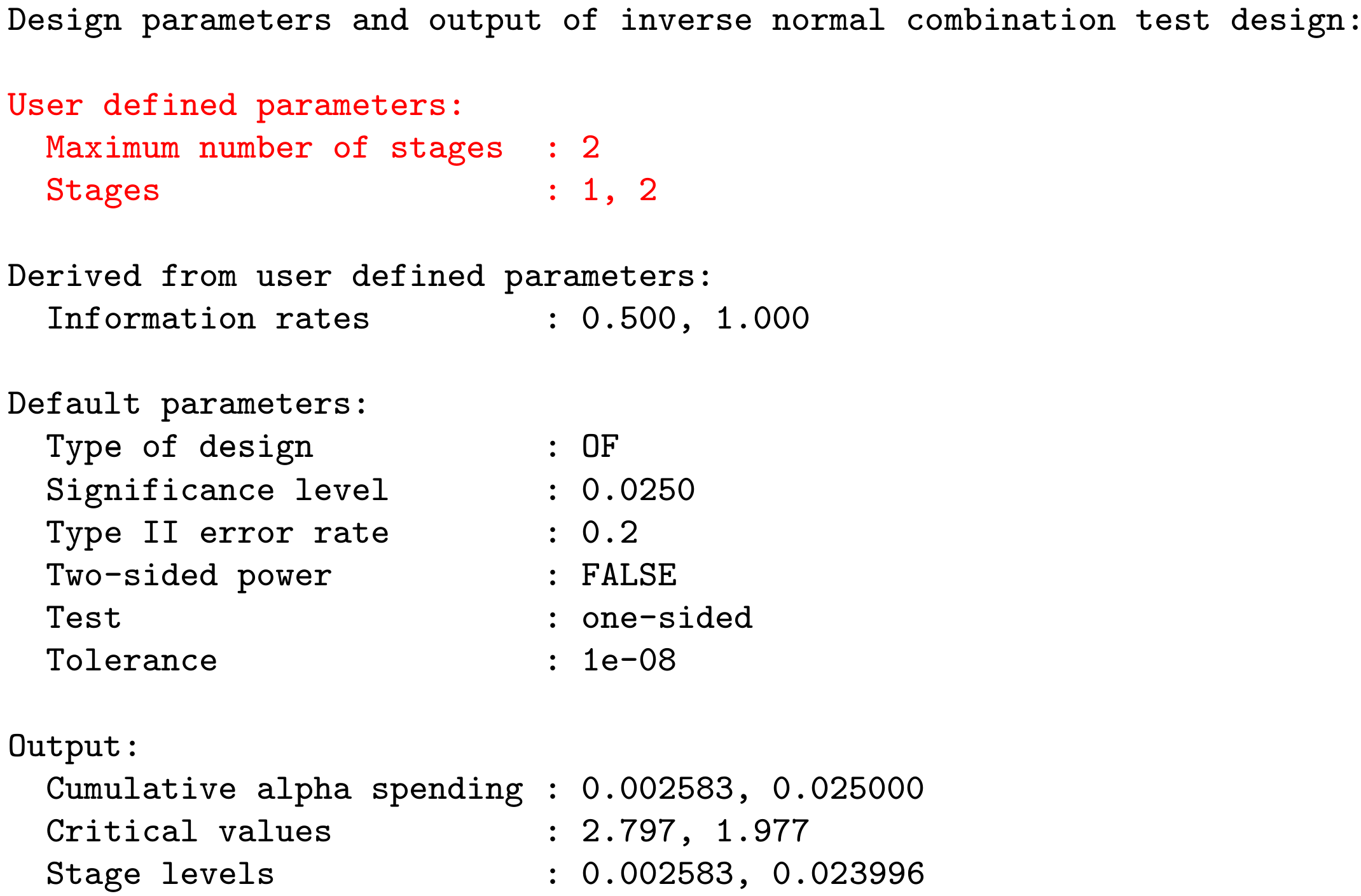 - Conditional rejection probability: 0.08839, 0.50232, NA